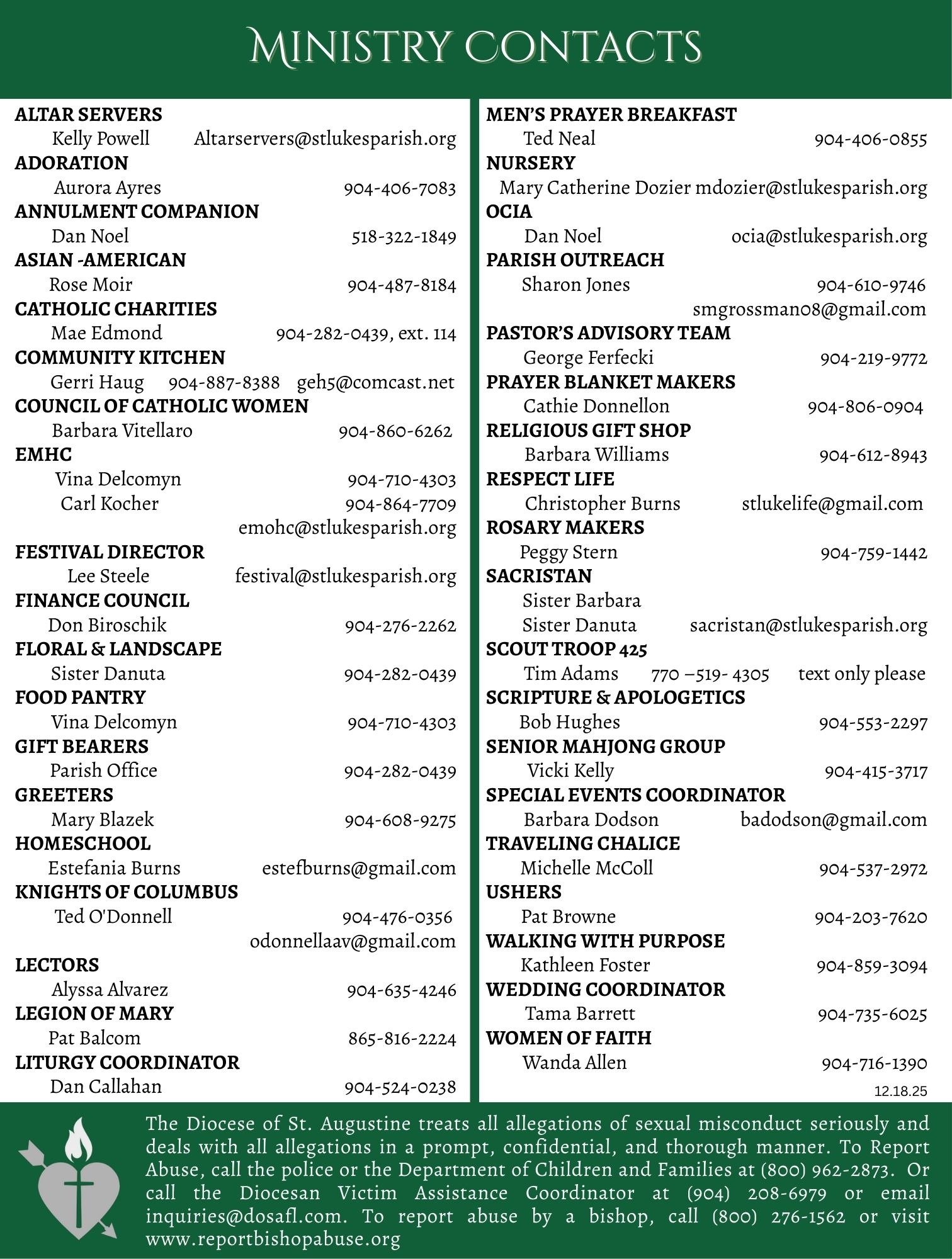 At St. Luke Catholic Church we have over 50 ministries to serve you, as well as ministries in which you may serve.